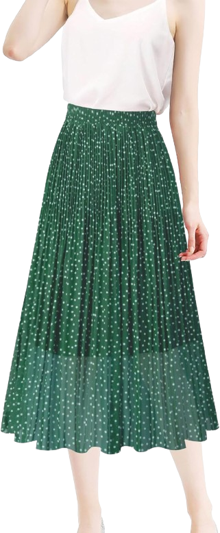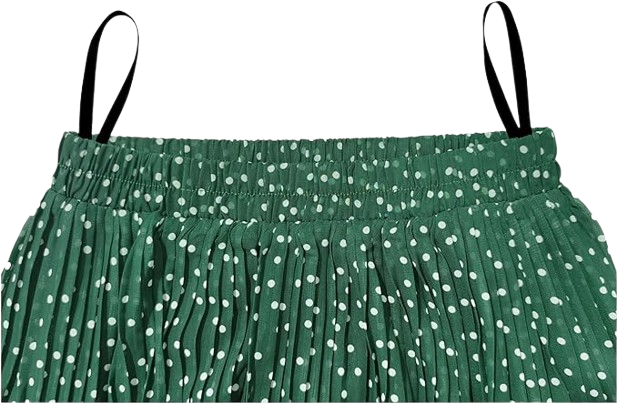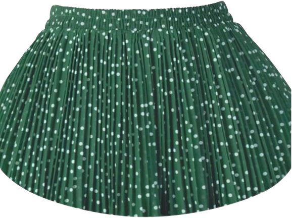 Add a touch of vintage charm to your outfit with this beautiful Green Polka Dot Pleated Midi Skirt. Featuring a soft, flowing silhouette with finely pressed pleats, this skirt captures effortless elegance and playful style. The dark green base is delicately dotted with classic white polka dots, giving it a timeless appeal perfect for both casual and semi-formal occasions.